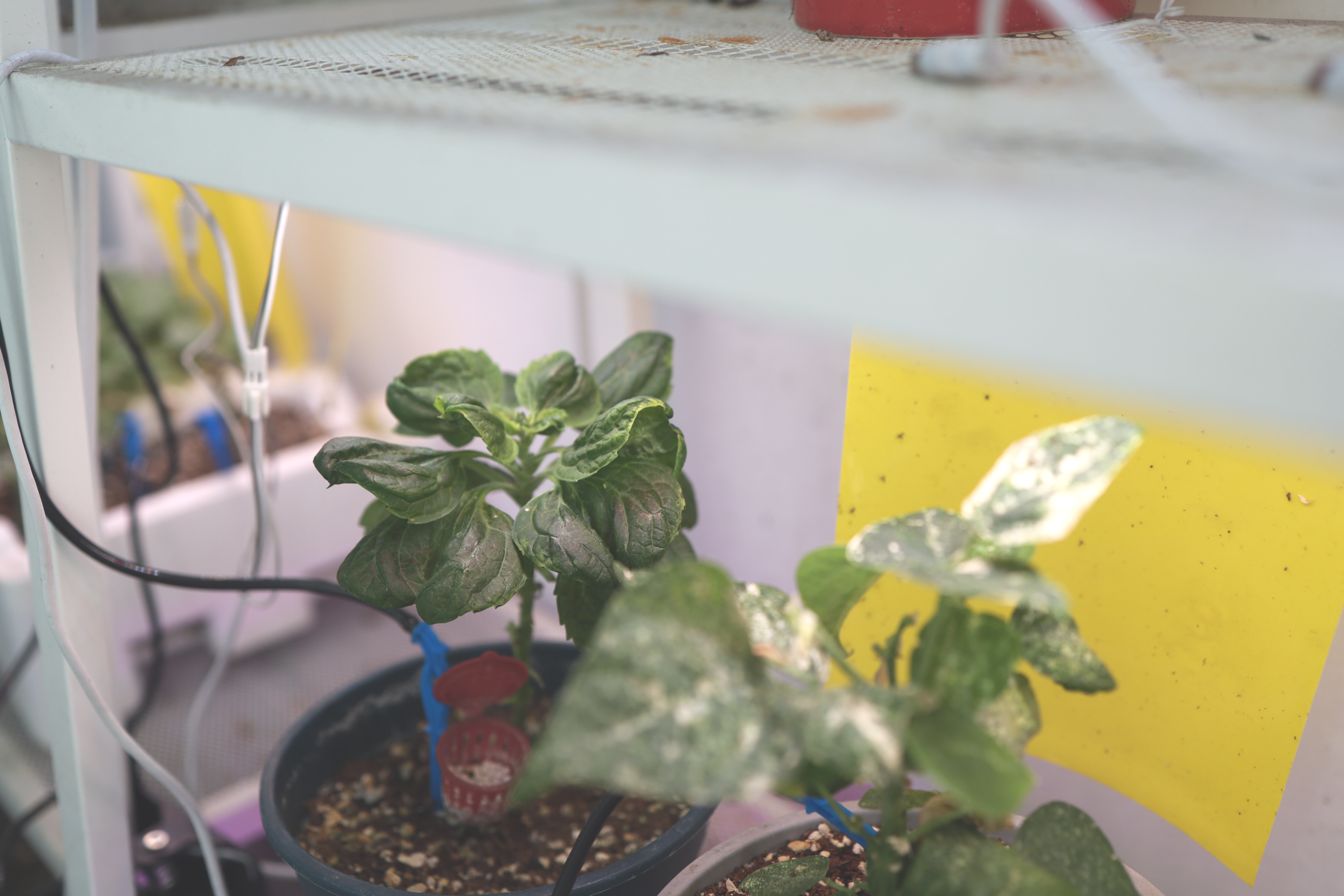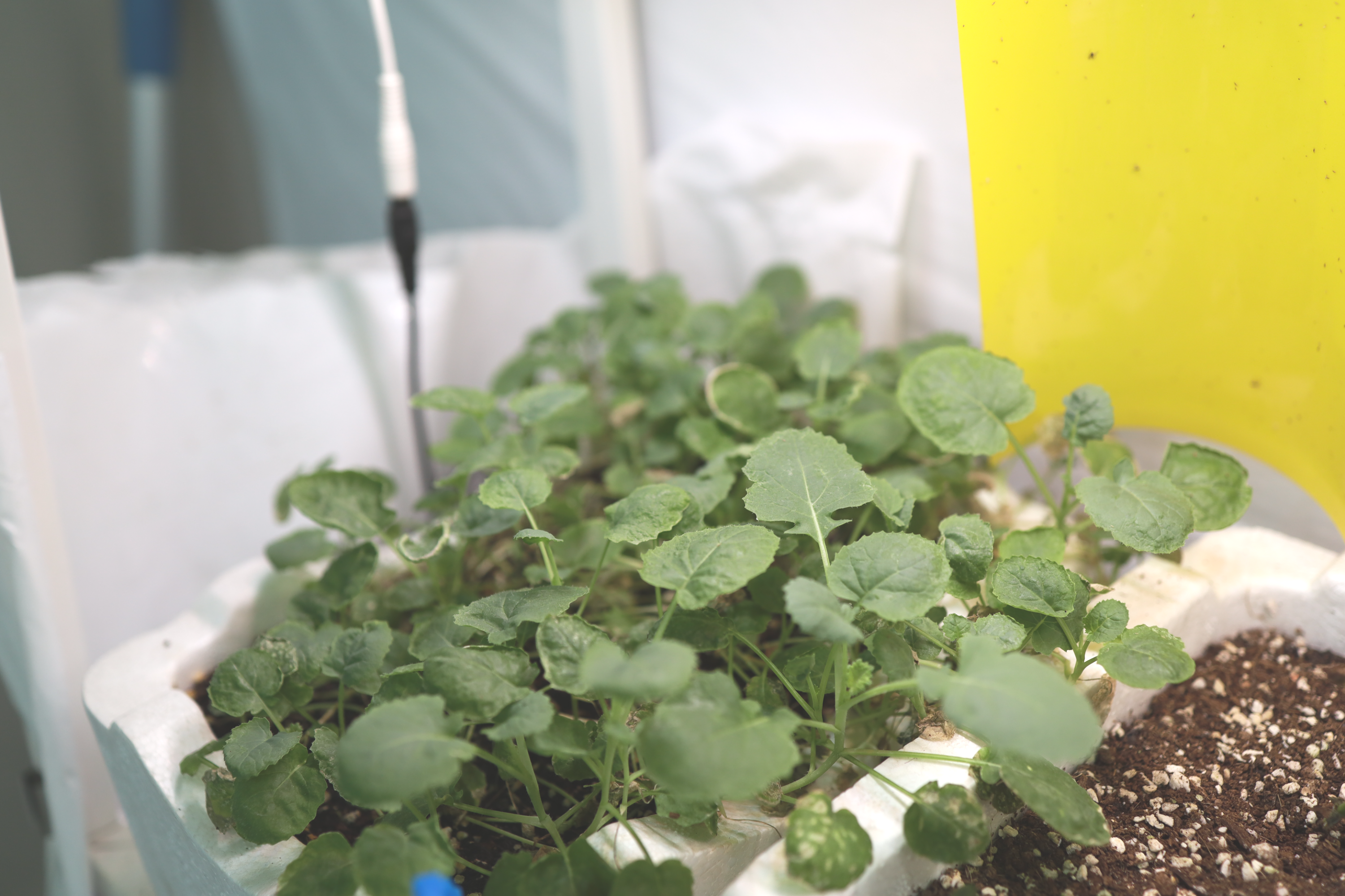식물 LED 선반에 방치중인 깻잎은 요상한 모양으로 자라고 있다.