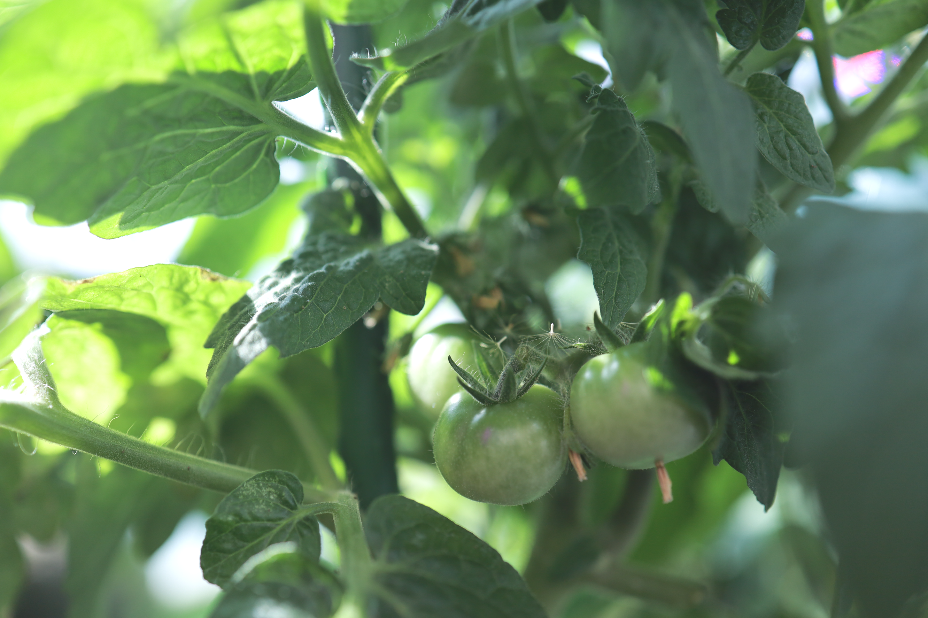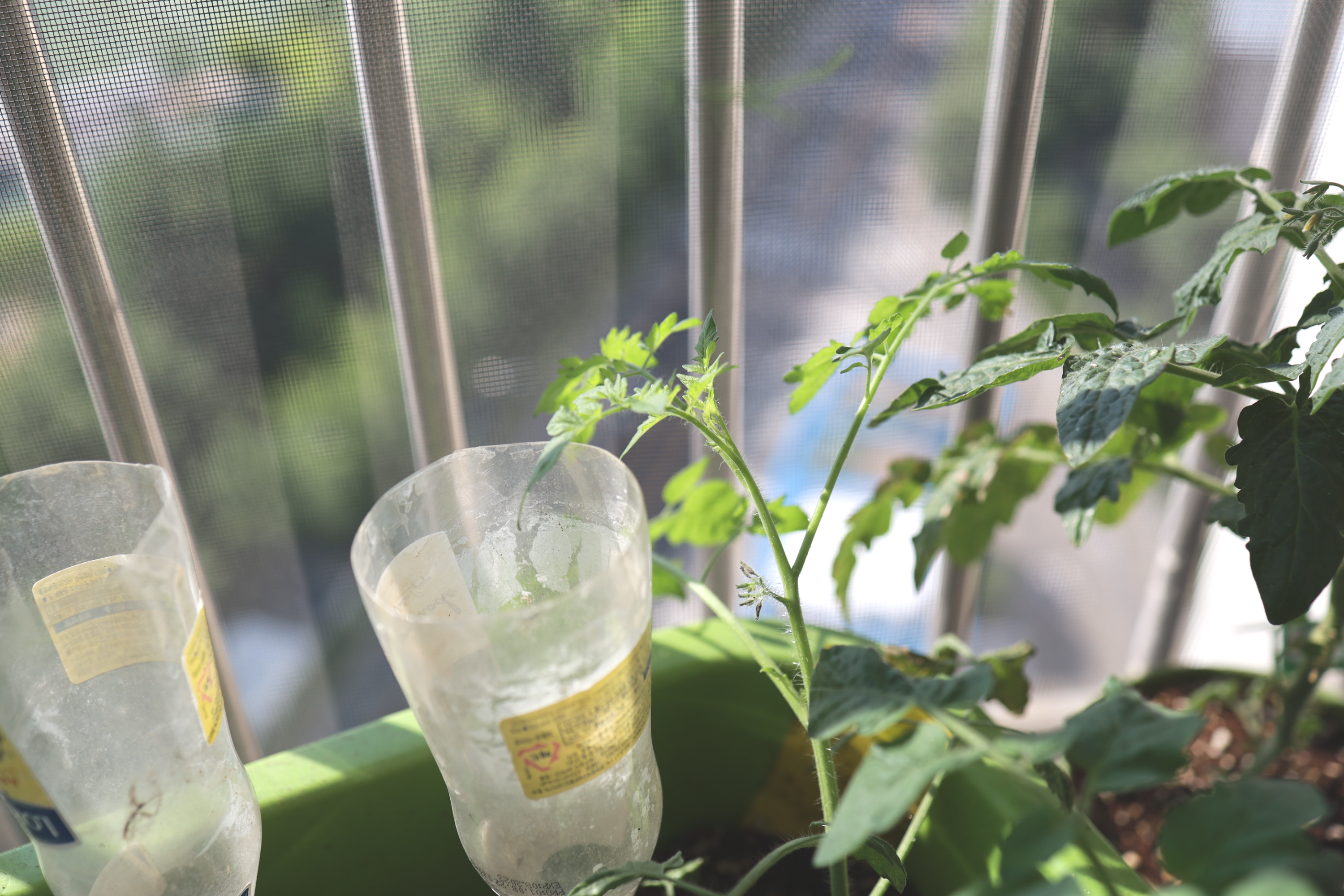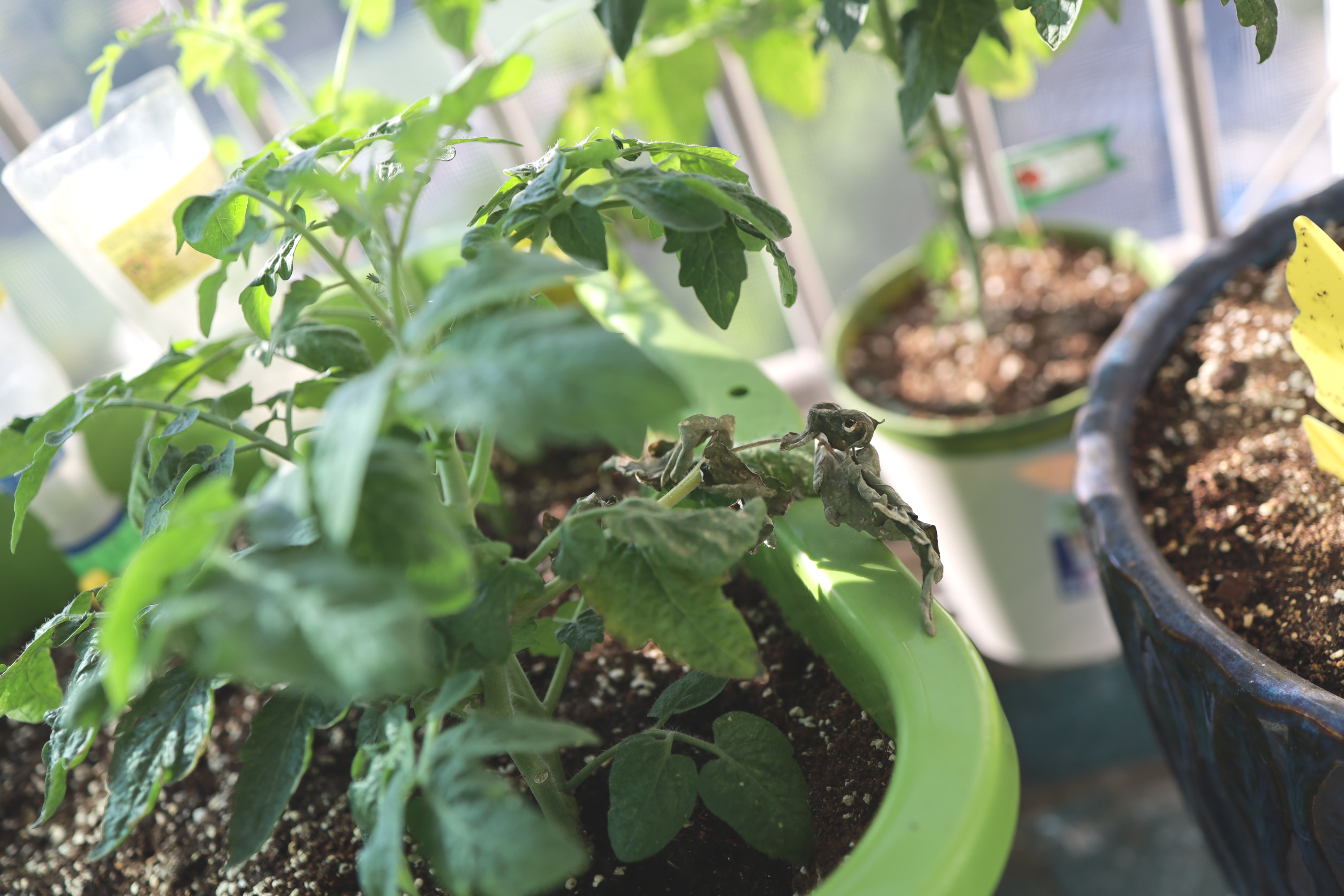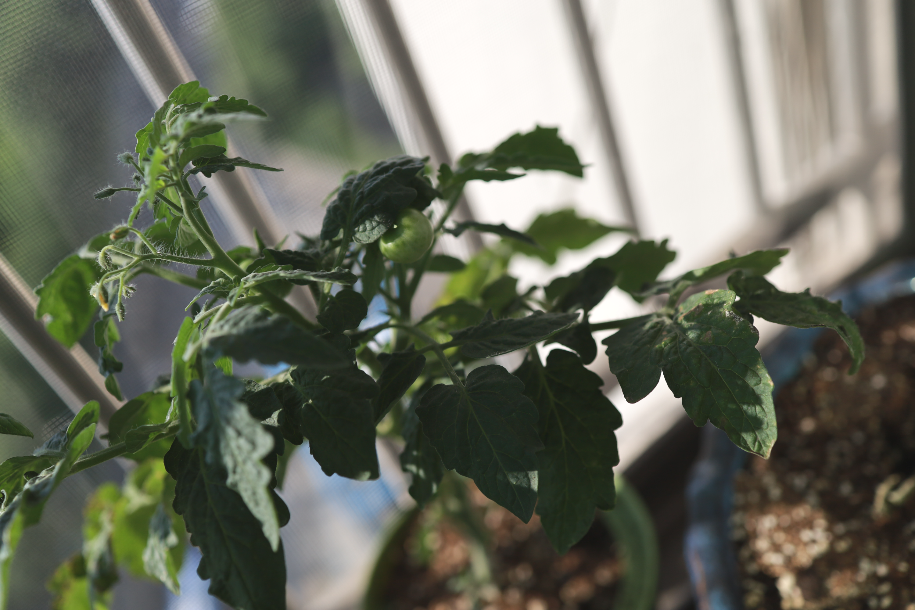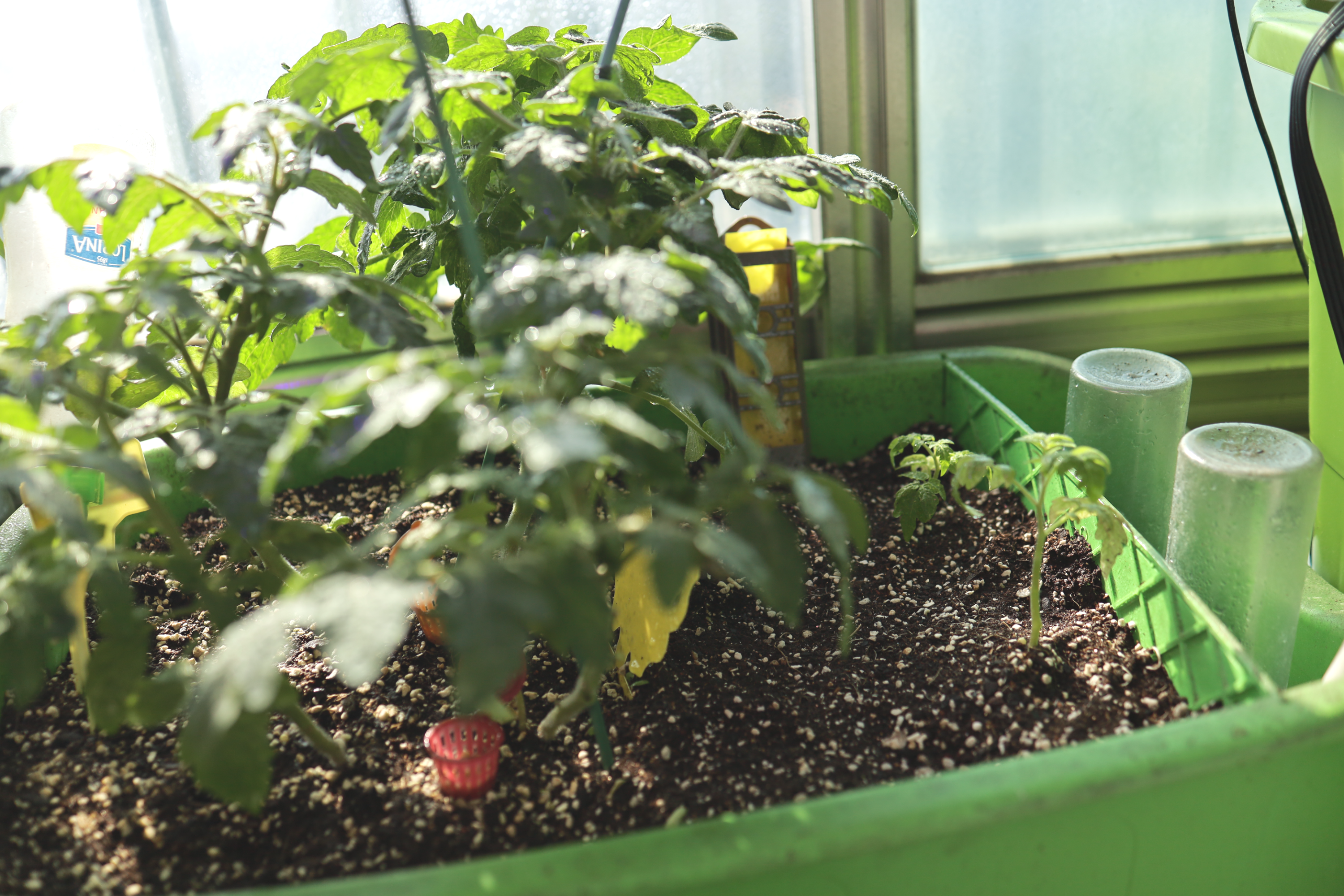 잎이 너무 커져버려 뒤늦게 싹이 튼 방울 토마토는 햇볓을 많이 받지 못해 성장이 느리다.